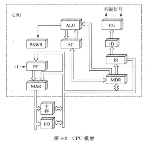 简单介绍一下上的内容:PSWR、PC、MAR、MDR、IR这个五个专用寄存器上面已经说过了,就不做赘述。其中ID是指令译码器,也就是翻译指令的。CU表示的都是控制单元。ALU表示的是运算器,用来进行算逻运算的。AC是累加寄存器,属于通用寄存器,上面也说过了。