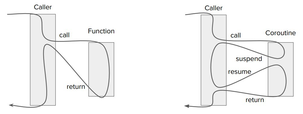 我们知道一个函数的函数体(function body)是顺序执行的,执行完之后将结果返回给调用者,我们没办法挂起它并稍后恢复它,只能等待它结束。而无栈协程则允许我们把函数挂起,然后在任意需要的时刻去恢复并执行函数体,相比普通函数,协程的函数体可以挂起并在任意时刻恢复执行。
