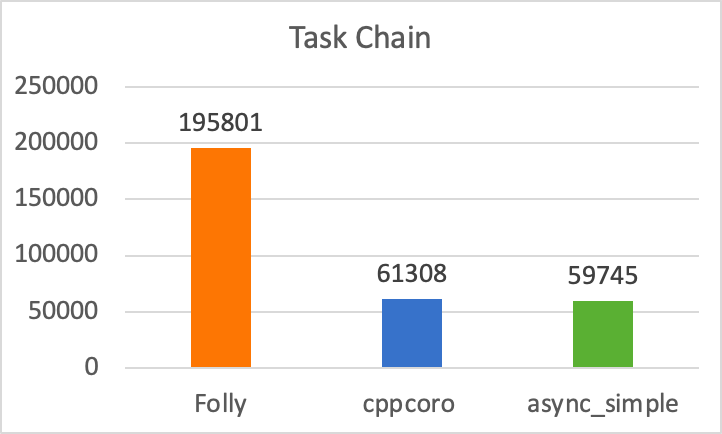 使用 async_simple 中的 Lazy 与 folly 中的 Task 以及 cppcoro 中的 task 进行比较,对无栈协程的创建速度与切换速度进行性能测试。需要说明的是,这只是一个高度裁剪的测试用于简单展示 async_simple,并不做任何性能比较的目的。而且 Folly::Task 有着更多的功能,例如 Folly::Task 在切换时会在 AsyncStack 记录上下文以增强程序的 Debug 便利性。
