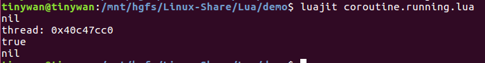 描述:函数 coroutine.running 用于返回正在运行中的协程,如果没有协程运行,则返回 nil