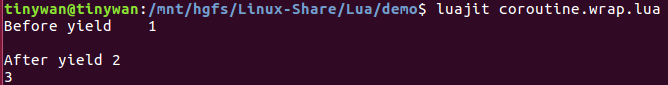 描述:coroutine.yield 函数可以让一个运行中的协程中断挂起,运行以下代码:
