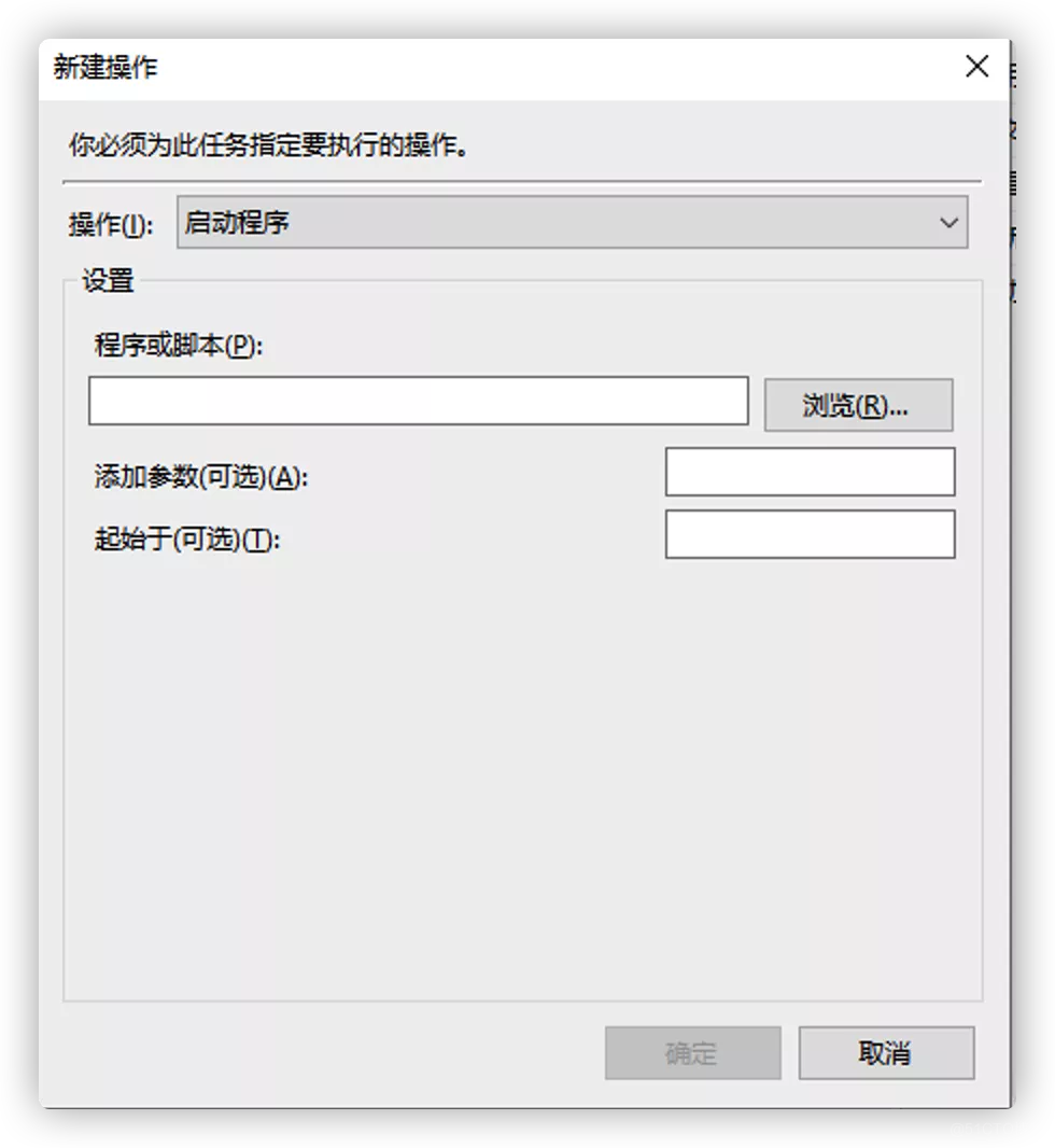 如果是powershell ,则在路径输入 powershell 在添加参数:输入要执行的脚本路径,如:c:aa.ps1 起始于:选择这个程序的执行的路径,一般会选择到该程序所在的目录,确保执行的时候,里面会调用到同目录文件,可以顺利调用