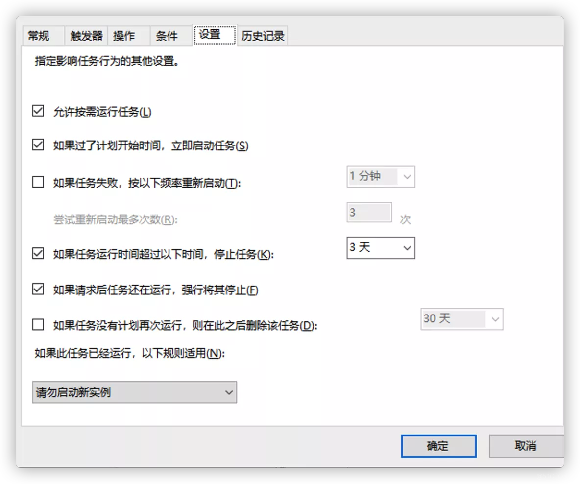 开始任务:默认都是使用的按预定计划来执行,其他几个任务状态可以根据字面意思的实际需求进行设置,基本属于是特殊用法,等于是在下面的任务设置的基础上,加了条件。