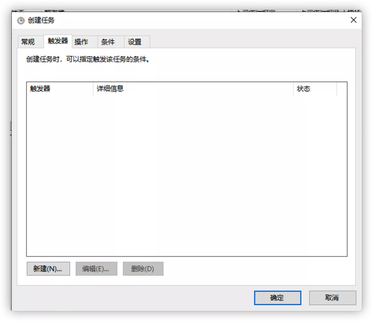 触发器是新建 编辑 删除 三个针对具体触发的内容的操作。不做讲述,字面意思
