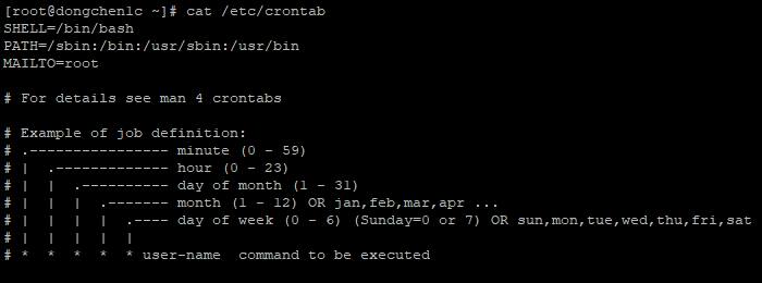 PATH | crontab 命令执行的路径,若命令不在这些目录中,则需要指定完整路径。 |
