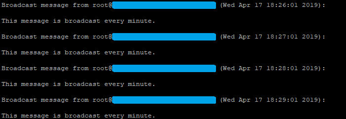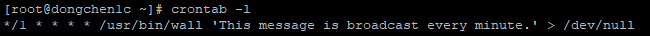 */1 * * * * /usr/bin/wall '每分钟传播一次该消息.' > /dev/null