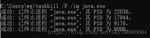 有时候由于病毒或其他原因,启动了一系列的进程,并且有时杀了这个,又多了那个。使用命令taskkill可将这些进程一下子全部杀光: