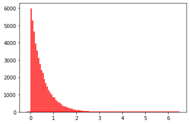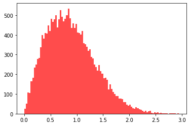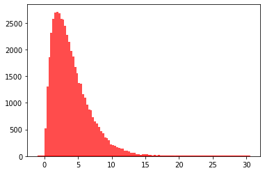 plt.hist(data, bins=100, color="#FF0000", alpha=.7)