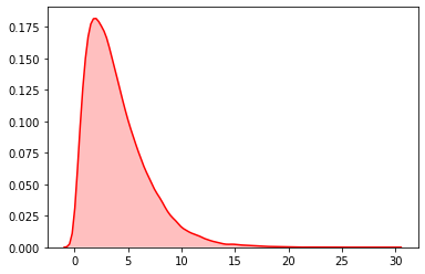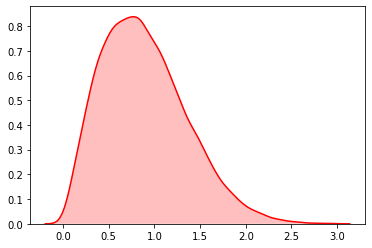 sns.kdeplot(data, shade=True,color="#FF0000")