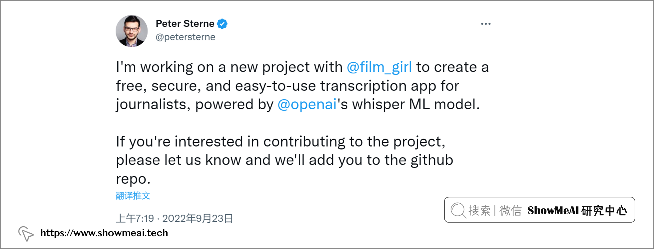 由于 Whisper 模型较小,便于本地运行的移动 App 使用,从而可以避免转录前数据上传云端导致的隐私问题(已经有人行动起来了 ????例如下方推文)。