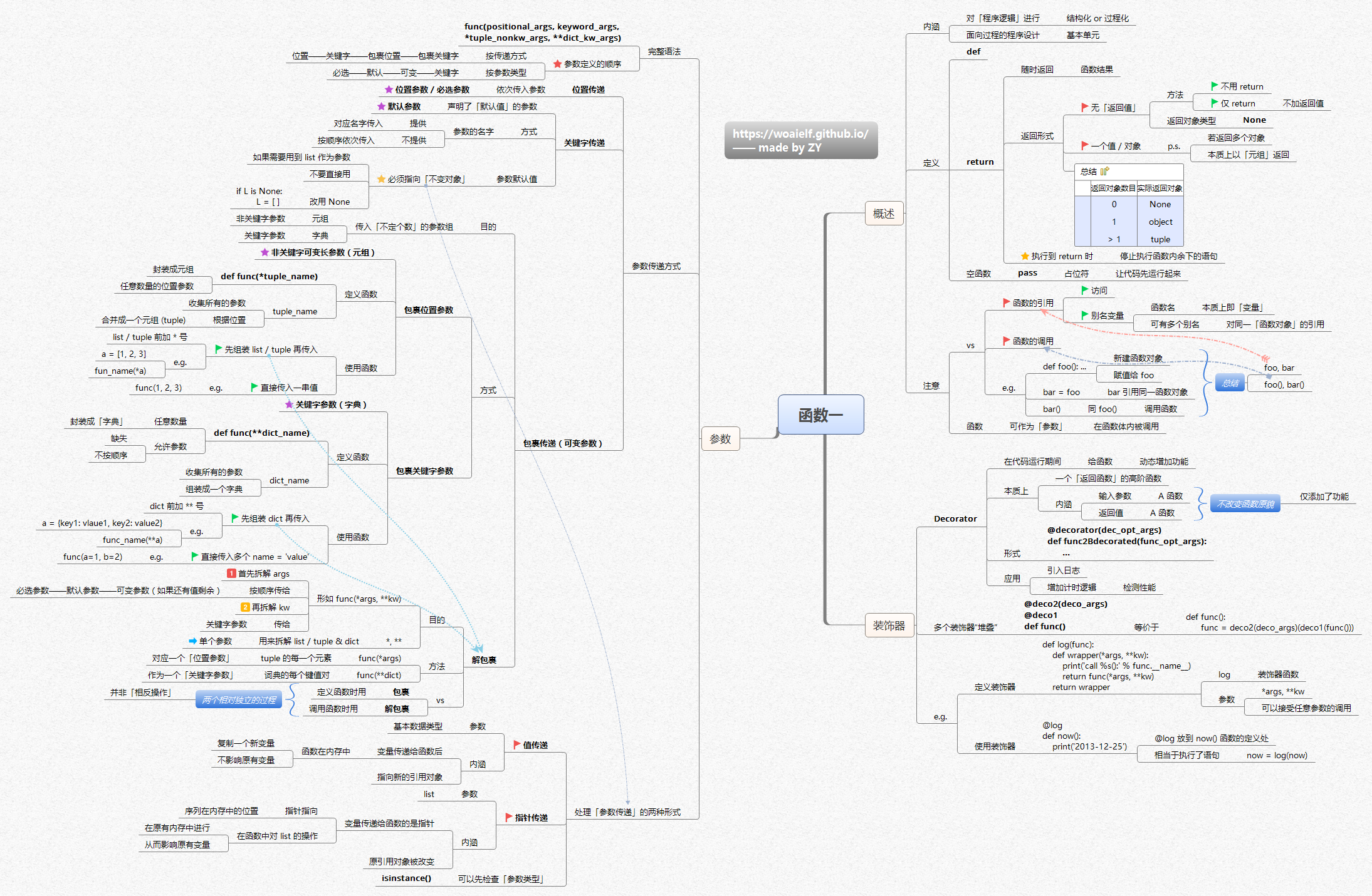 函数一介绍了函数概述,注意vs函数的引用、调用,装饰器的定义、“堆叠”。参数具有自己的完整语法以及自己的传递方式。