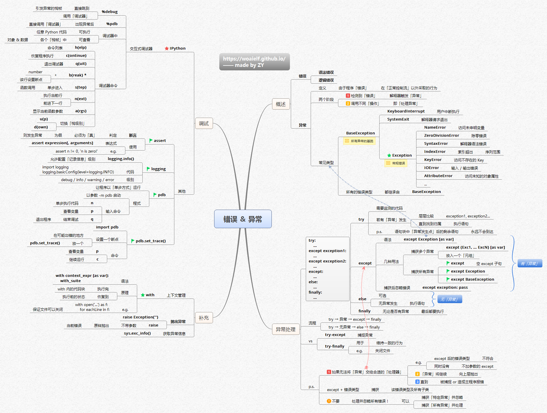 错误|异常这张图的点介绍了如何调试、处理异常情况。