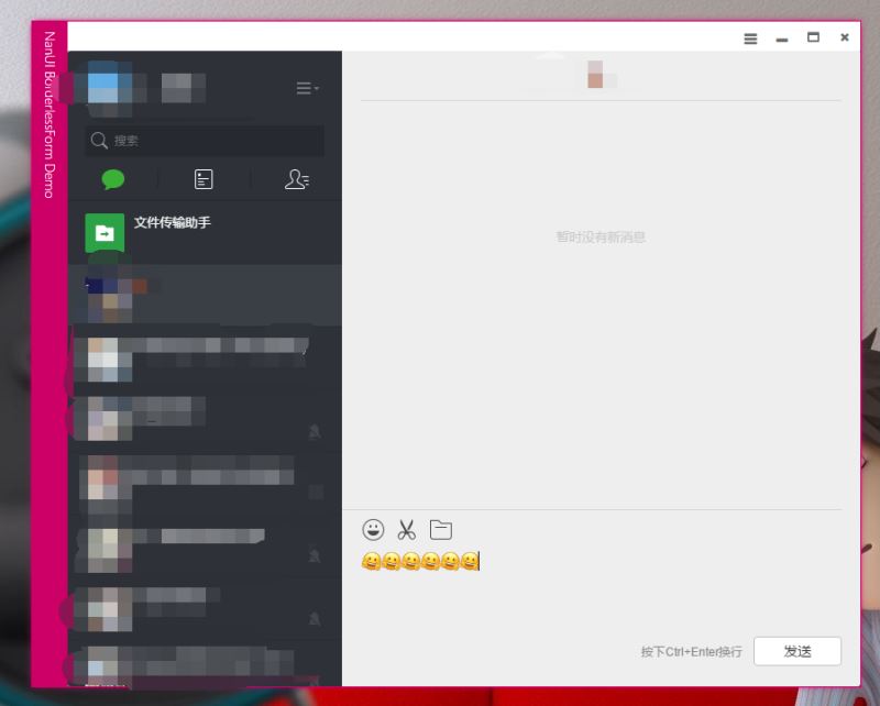 大功告成,里面可以正常聊天和传文件,但是不能截图。