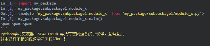 接下来进入subpackage1文件夹,编辑其中的_init_.py文件,输入以下代码: