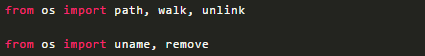 fromosimport(path, walk, unlink, uname, remove, rename)
