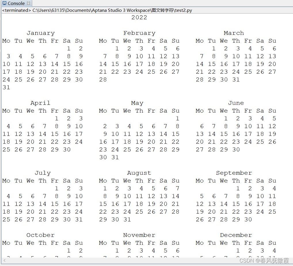 有了time及datetime模块,再结合日历(Calendar)模块就可以更好的覆盖到时间处理的各个方面的应用。日历模块主要是用于处理日历及星期相关操作。