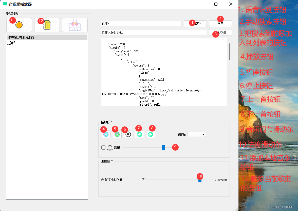 我是靠谱客的博主 冷艳时光,这篇文章主要介绍QT 基于 百度云语音识别, 基于网易API 接口的歌曲查询,的音乐播放器。1.成果展示:2.界面操作提示3.代码解析4.所有的代码:,现在分享给大家,希望可以做个参考。