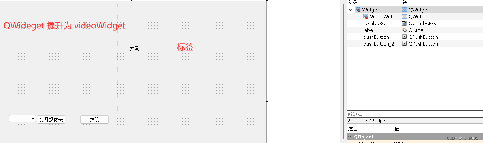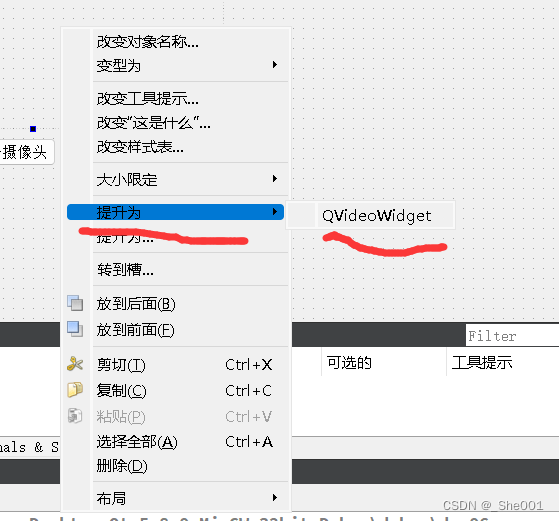 可以看到我们 的成员是 QVideoWidget ,所以我们需要把, QWidget 提升为 QVideoWidget .