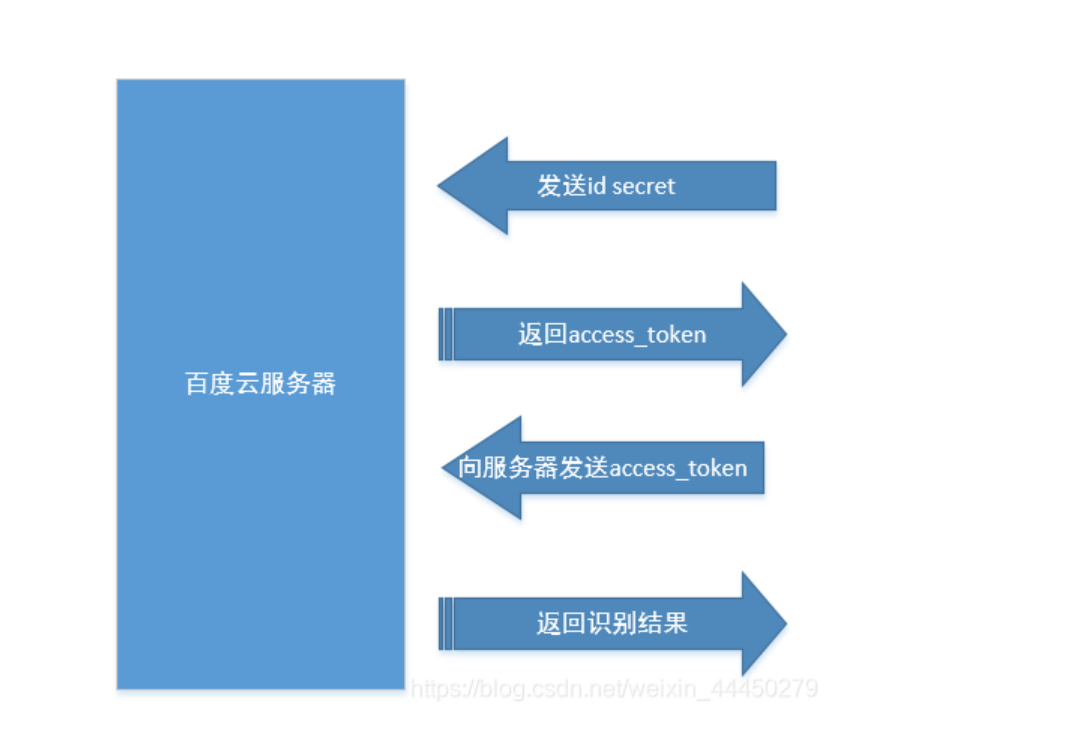 处理流程:1.通过TCP协议向服务器发送id,secret,其中一个服务器会返回一个access_token(其有效期为1个月)2.再向另一个服务器发送音频文件access_token,并返回语音识别结果,如上图所示