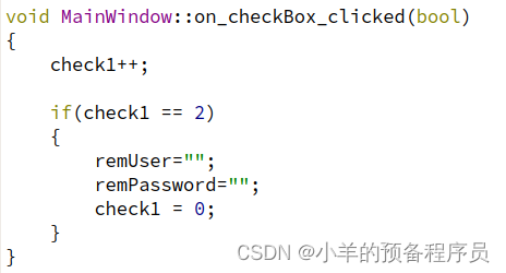 每次点击check box 模块会进入槽函数check1++,勾选上的时候正常记住密码,取消勾选的时候将记住的账户名和密码重置为空