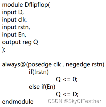 一个时钟信号的上升沿来临时,将此时的输入D传输给输出Q;在时钟信号的其他阶段内,输出均保持不变。
