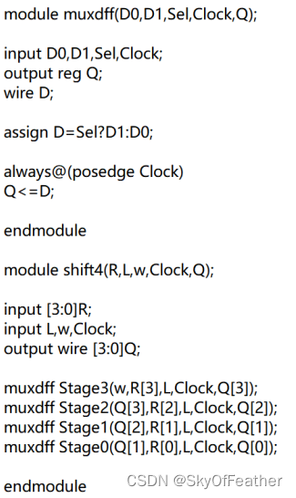 即:L为0时并行加载,数组R为加载时的输入。L为1时移位,数组Q右移一位,左端补当前变量w的值。