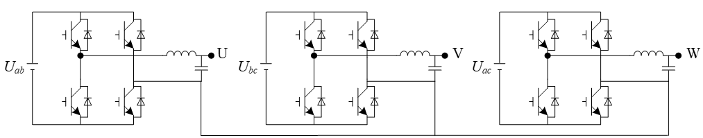 方案一:基于全桥结构的三相逆变器的拓扑结构,如下图1所示。该结构由三个相互独立的单相逆变器组合而成,各模块相互独立互不干扰,故系统控制简单。但要求三个单相逆变器的输入且彼此隔离,增加了系统复杂度。