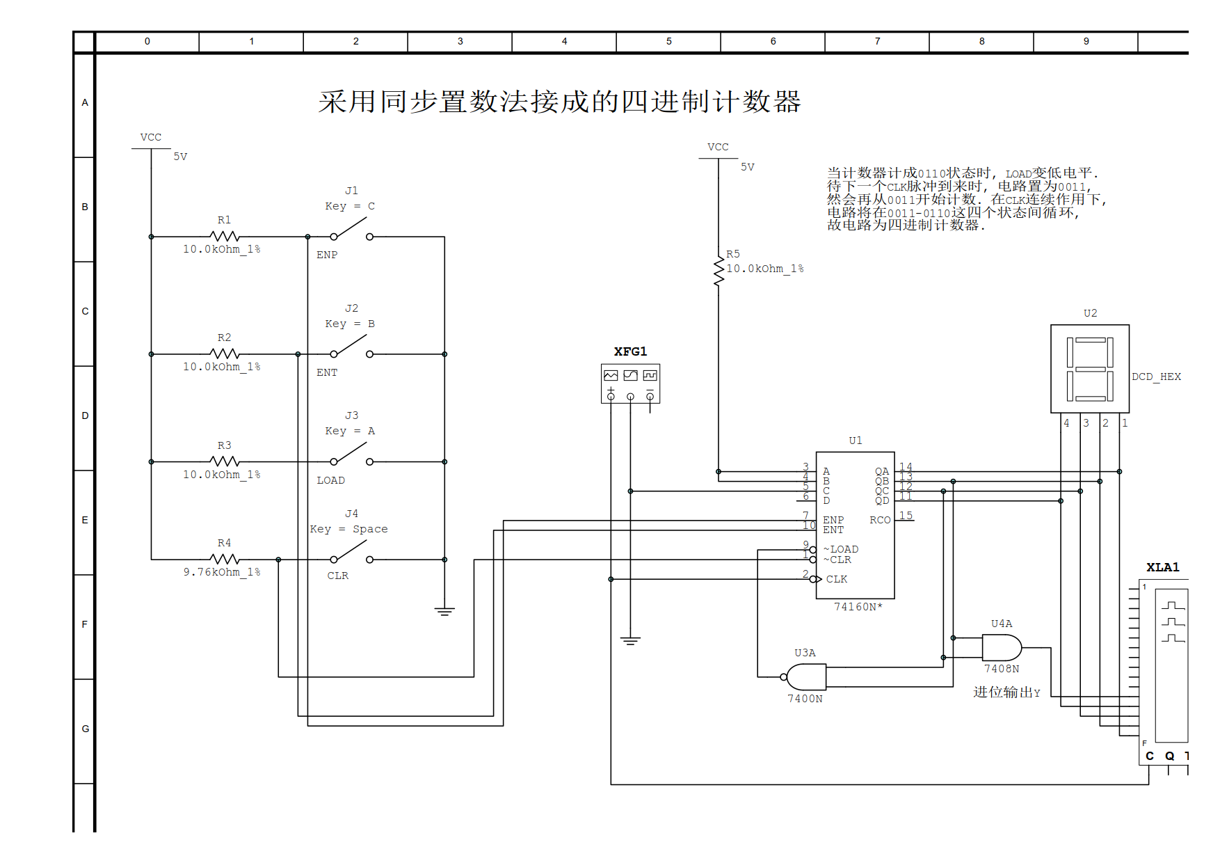 74160同步置数法接成同步四进制计数器