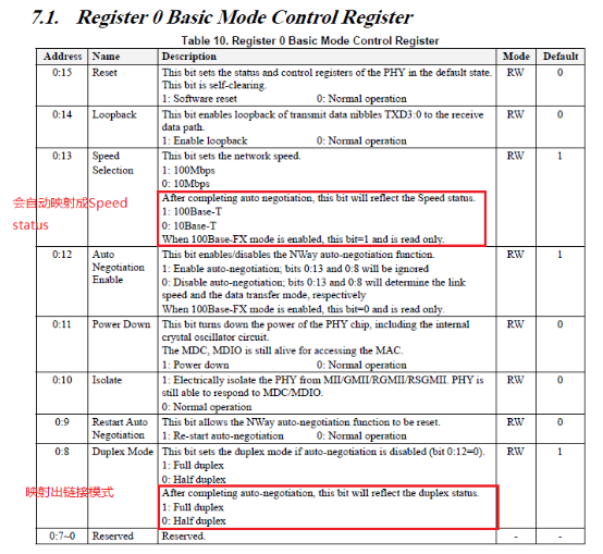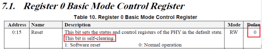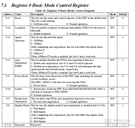 没办法我能不能不进行reset操作啊,如果不进行reset操作寄存器那不就不能回到Default状态,所以我自己写数据到这些寄存器让他们成为Default状态不就OK(好办法),修改参考(Register 0 Basic Mode Control Register)