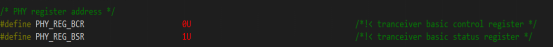 我们配置RTL8201F其实就是配置BCR寄存器,通过GD调用官方的enet_phy_write_read函数来完成对PHY芯片寄存器的读写操作,在GD官方库gd32f4xx_enet.h中已经定于了BCR,BSR代码如下: