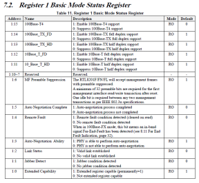 在RTL8201F中比较重要的寄存器,BCR(0),BSR(1),PHY特殊功能寄存器