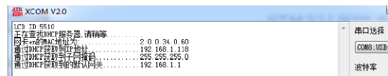 上电通过了,自动获取IP也成功了,如图: