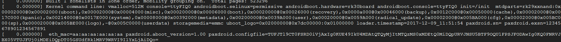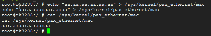 1.1在安卓的文件系统生成如下的设备节点:/sys/kernel/pax_ethernet/mac用于烧录以及读取以太网的mac地址。使用adb命令进行以太网mac地址的烧写以及读写。本质上在使用echo "aa:aa:aa:aa:aa:aa" > /sys/kernel/pax_ethernet/mac这个命令的时候会调用kernel的底层驱动往我们存放的mac地址的分区写入以太网的mac地址。我们的需求是在烧录了以太网的mac地址之后,设备就一直使用我们烧录的mac给网卡设备,不在使用随机数生成mac地址。实现的思路大致如下:在使用adb命令往/sys/kernel/pax_ethernet/mac这个设备节点写入合法的mac地址之后,在重启之后uboot启动的时候会从这烧录mac地址的分区读取烧录mac地址,如果烧录的mac地址合法,就会通过cmdline的机制传递给kernel,kernel的以太网往驱动会解析uboot发送的cmdline,将传递的字符串解析之后,如果合法在赋值给网卡,我在kernel的驱动还做了判断,如果uboot传递的mac地址出错或者读取有异常,kernel会在一次从分区中获取mac地址。好吧,讲了这么多,我们还是看代码是如何实现的吧。