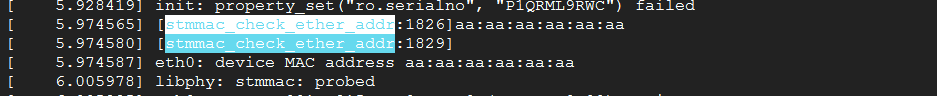 u_char mac_addr_str[18] = {0}; u_char mac_addr[7] = {0}; static int __init get_mac_addr(char *str) { strncpy(mac_addr_str,str,17); printk(KERN_ERR"[%s:%d] mac_addr_str = %s",__func__,__LINE__,mac_addr_str); return 0; } //解析cmdline __setup("eth_mac=",get_mac_addr); module_init(stmmac_init); module_exit(stmmac_exit);