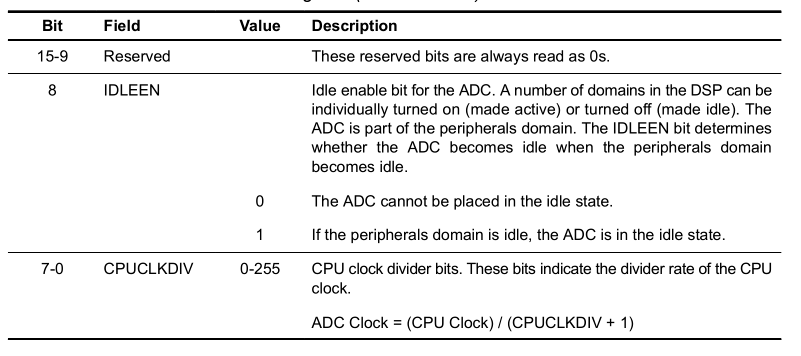 ADC 时钟 = (CPU Clock) / (CPUCLKDIV + 1)