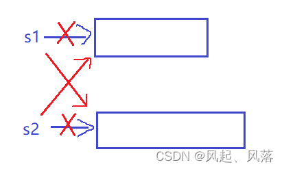 - 修改s1指针指向原来s2指向的空间,修改s2指针指向原来s1指针指向的空间
