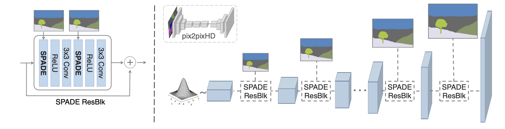 (左边对应SPADEResnetBlock,右边对应Generator)