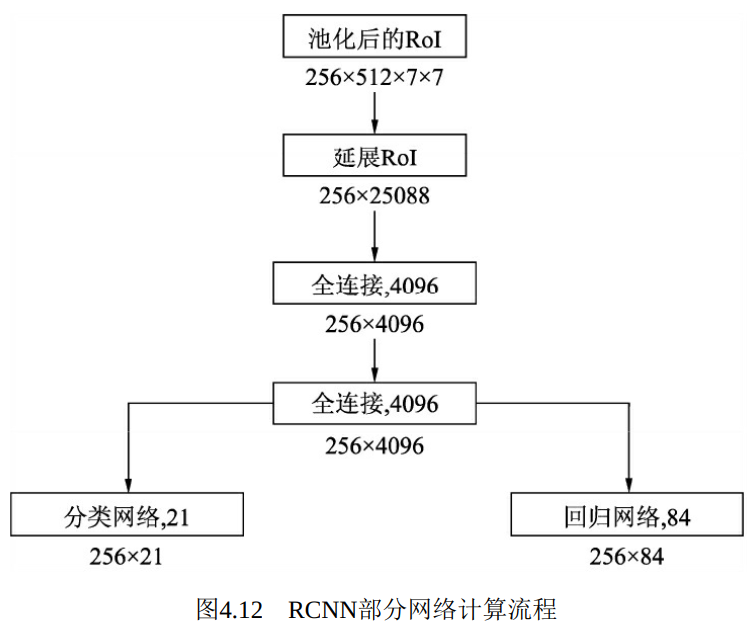(4)RCNN模块:接收ROI Pooling输出的特征图,预测出物体类别及位置偏移量