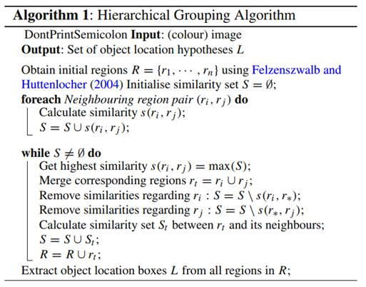 l 假设现在图像上有n个预分割的区域(Efficient Graph-Based Image Segmentation),表示为R={R1, R2, ..., Rn},