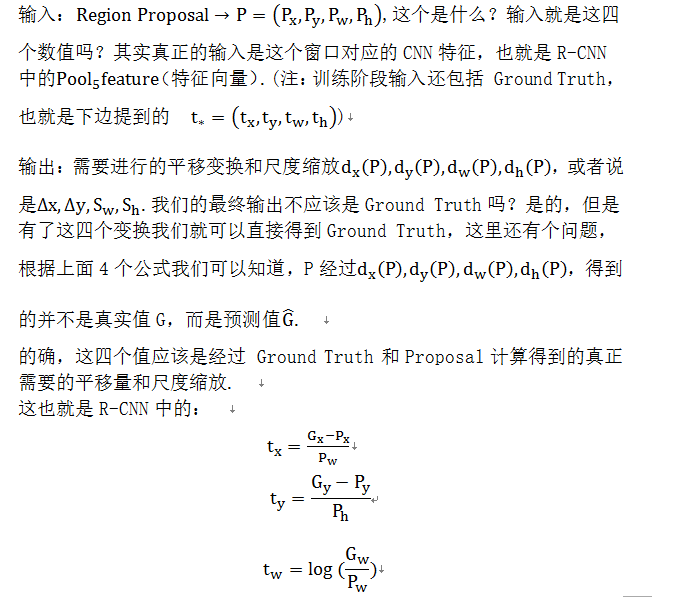 线性回归就是给定输入的特征向量X,学习一组参数W,使得经过线性回归后的值跟真实值Y(Ground Truth)非常接近.即.那么Bounding-box中我们的输入以及输出分别是什么呢?