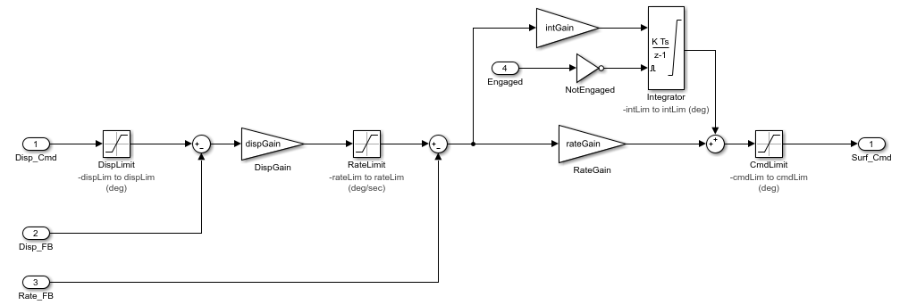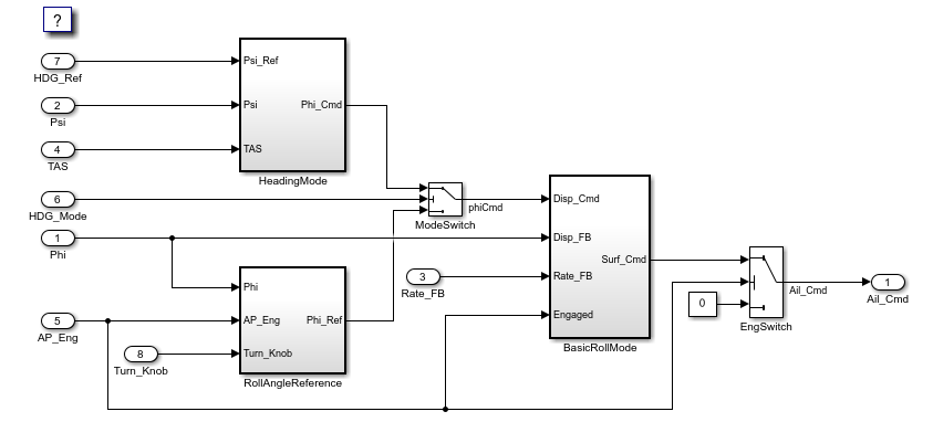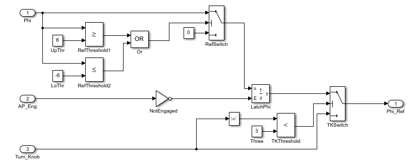 该子系统包含一个Integrator模块,它维护一个状态数据段。从模型的根级别,导航到RollAngleReference子系统。