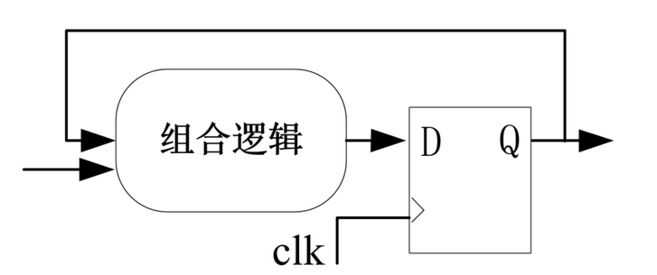 而这种带反馈的逻辑,必须要通过寄存器把输出暂存起来,再由时钟沿去控制数据的反馈更新,这样电路才有意义。