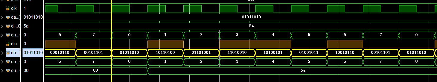 data <= {data[6:0],din};//核心代码左移寄存器