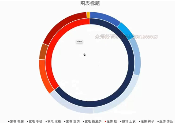 也利用环形图&使用辅助列来实现同时表示一级类目与二级类目