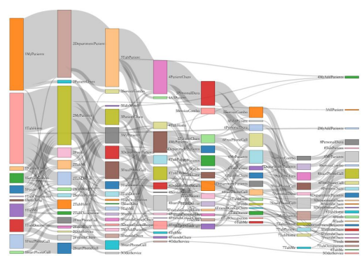 路径图:用户在一次会话的过程中,其访问产品内部的浏览轨迹。通过此,可以加工出关键路径转化率。有点像漏斗图,但是因为不是单一路径所以其实会非常复杂……