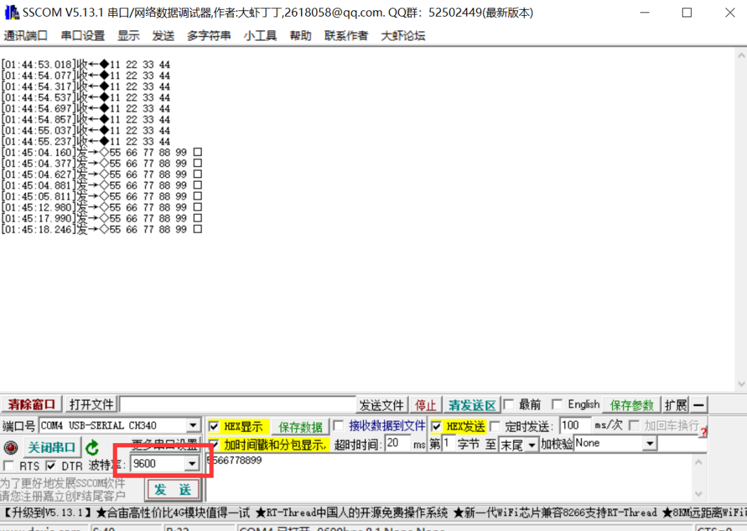 为蓝牙模块设置好固定的波特率后,需要在PC端串口调试工具上设置好对应的波特率进行数据收发。