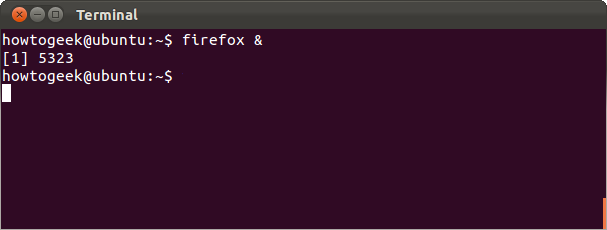 默认情况下,Bash会在当前终端下运行你的命令。正常来说没有问题,但是当你想同时运行一个应用程序而又要继续使用该终端时怎么办?比如你输入”firefox”命令来运行火狐浏览器,火狐将会占据你的终端并且显示一些错误信息等输出,直到你关闭它。但是加一个”&”符号在命令后面会使Bash在后台运行该程序: