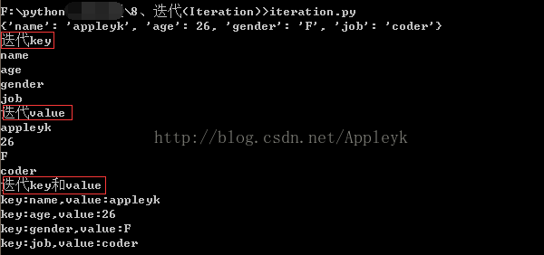 print('迭代key和value')
