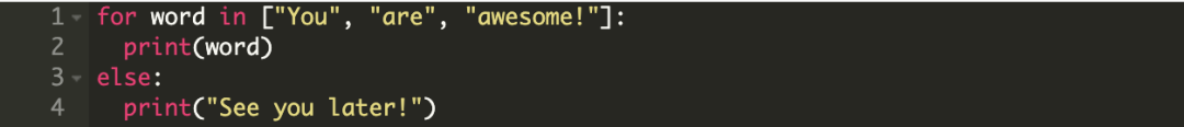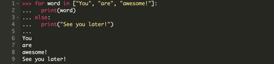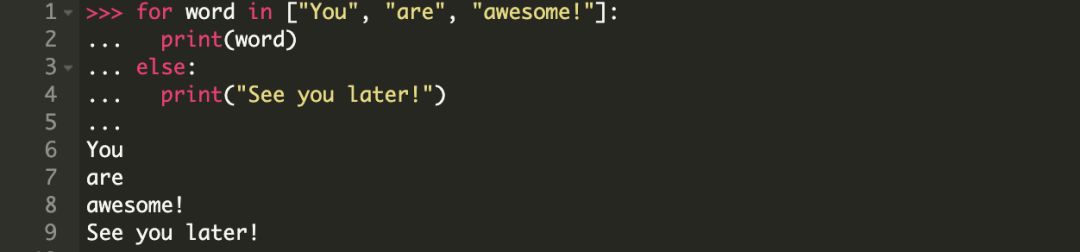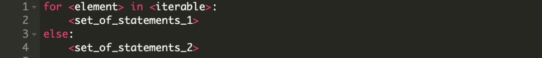 基本上,对于 iterable 中的每一个元素,都会执行 set_of_statements_1。一旦所有的元素都迭代一遍,控制器将跳转到 else 代码块中执行 set_of_statements_2。