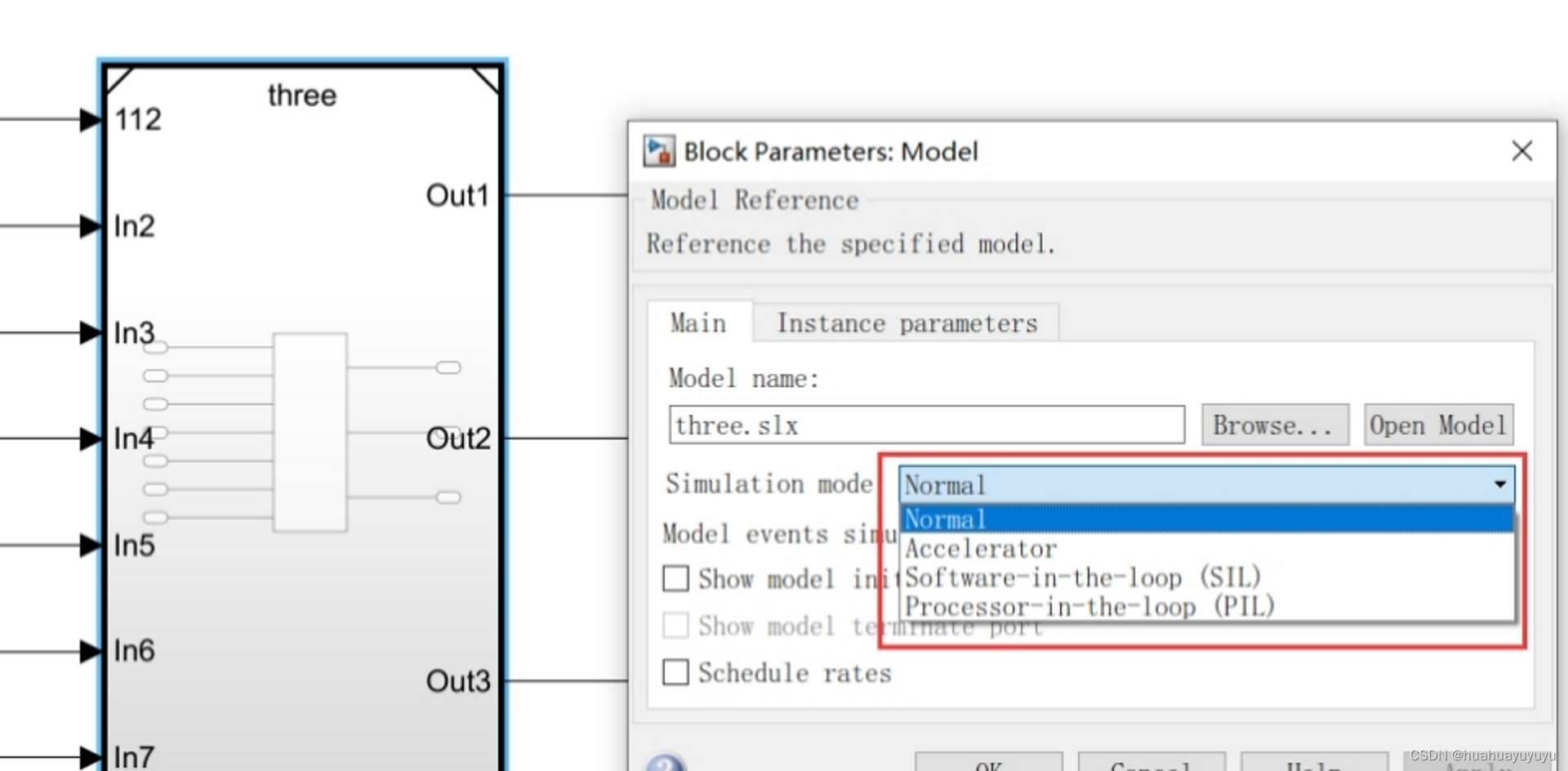 Accelerator:加速模式,将被引用 模型转成C代码然后处理成CLL文件,编译一次就可以了,可以很快提高速度
